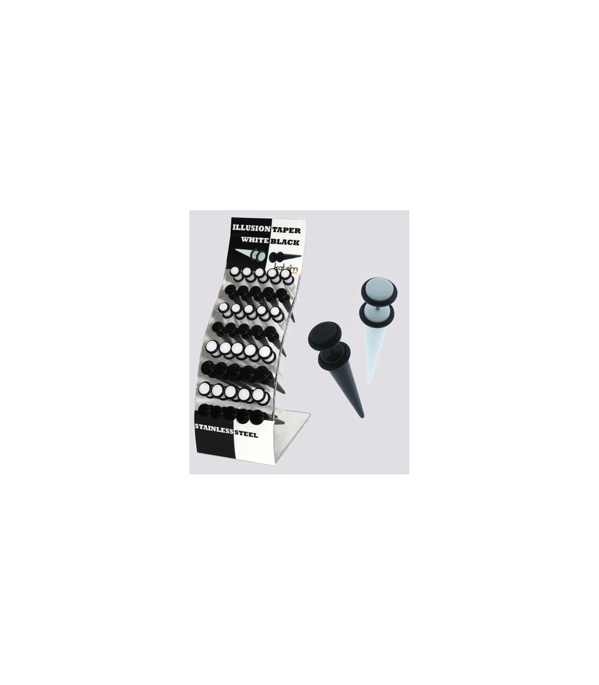 Exhibitor of 48 pieces of illusion plug in black and white. Measures 6mm, 8mm and 10mm for men and women, is super trendy. You can choose loose in packages of 10 pieces per color and measurement.