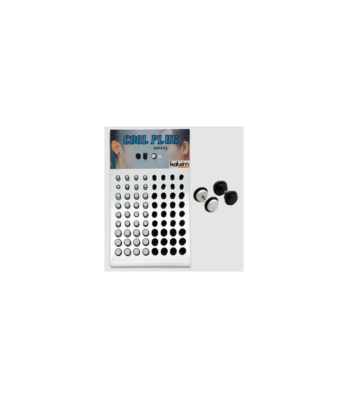 Exhibitor of 48 pieces of illusion plug in black and white. Measures 6mm, 8mm and 10mm for men and women, is super trendy. You can choose loose in packages of 10 pieces per color and measurement.