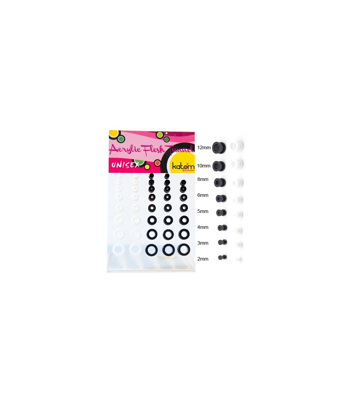 Flesh tunnel Exhibitor 42 acrylic parts of measures 3mm, 4mm, 5mm, 6mm, 8mm, 10mm and 12 mm. (Number of parts: 42)