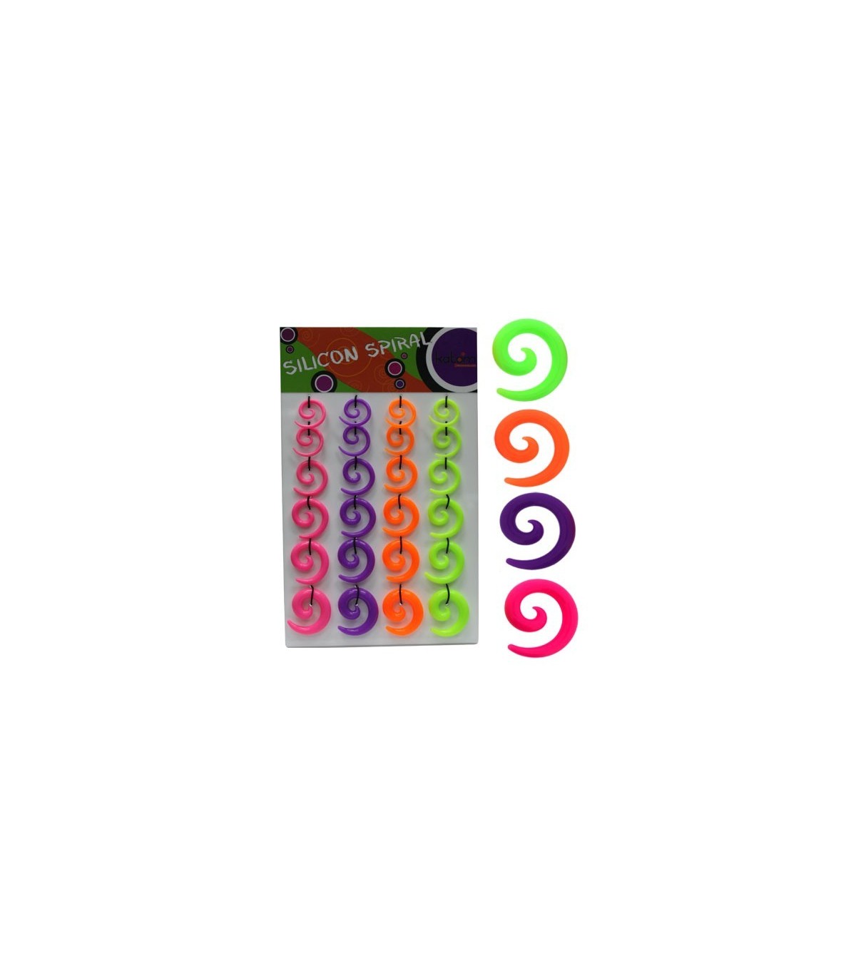 Exhibitor expanders forms spiral of sizes 3mm, 4mm, 5mm, 6mm, 8mm and 10 mm. in green, yellow, Fuchsia, lavender and light blue. (Number of pieces: 60)