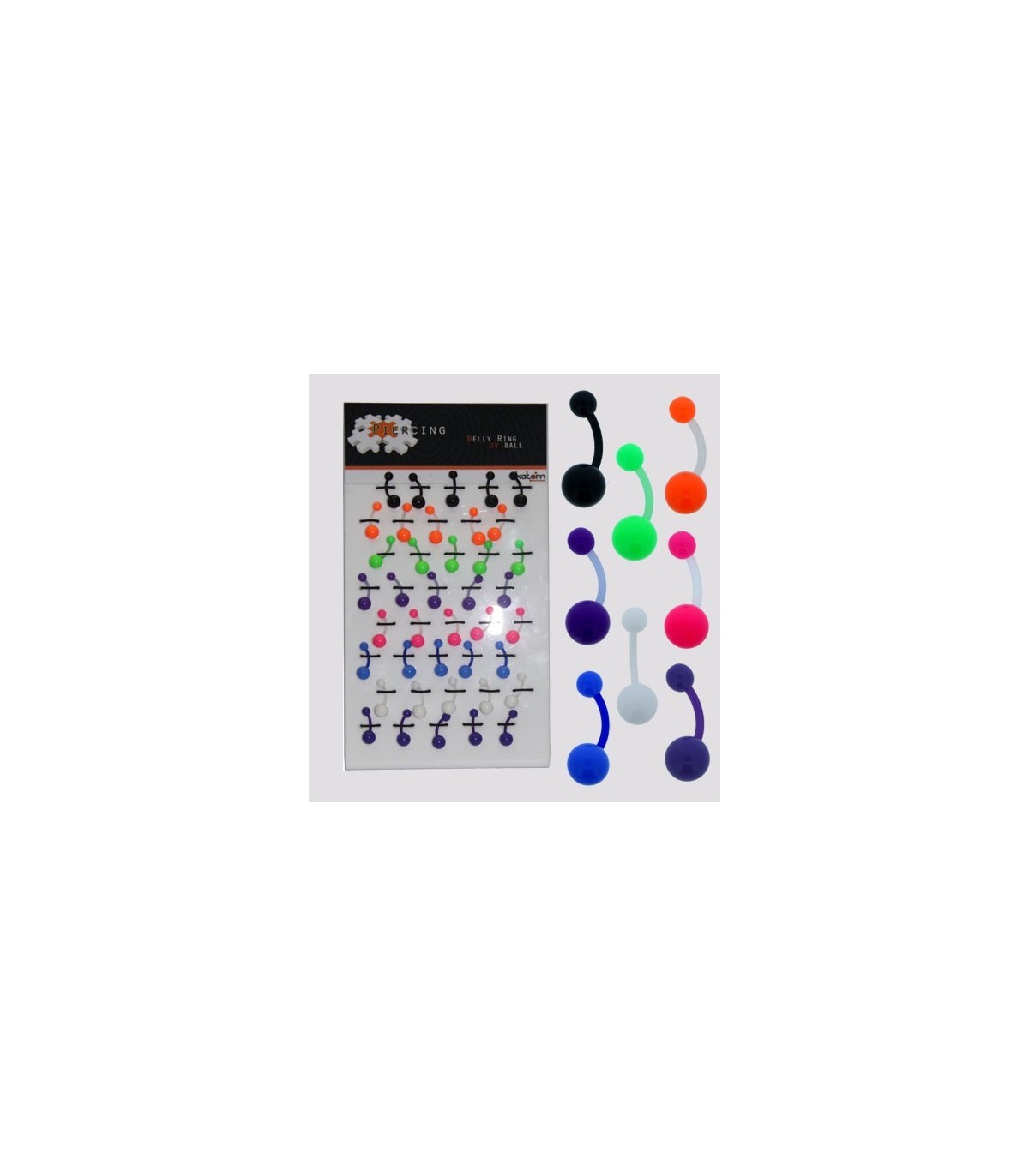 Surgical steel braid bar display with a variety of piercign for belly, tong and eyebrow. Ideal for beginners.