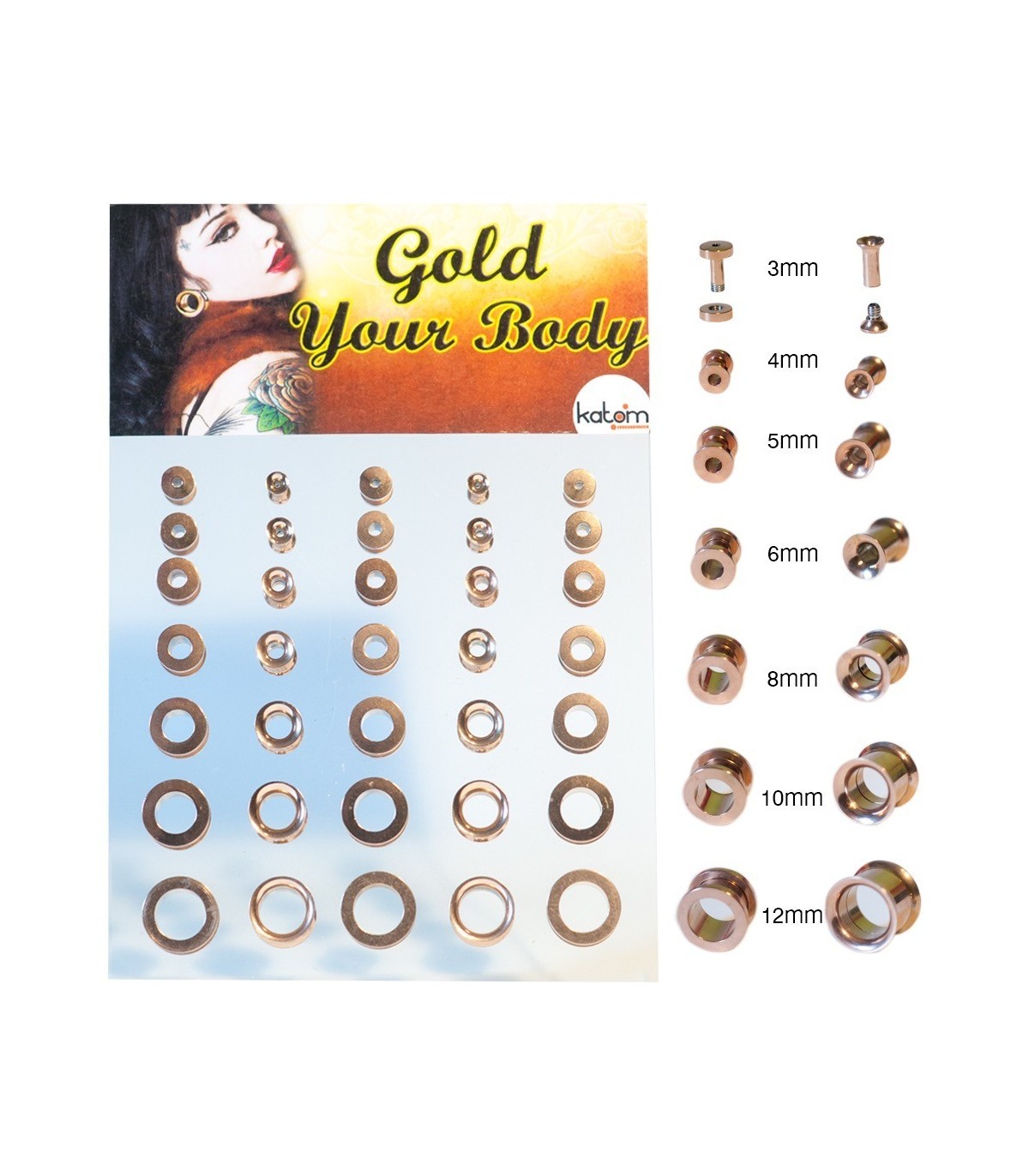 Exhibitor of 40 pieces expansion 4, 6, 8, 10 mm, for men and women, 3 different colors. (Number of pieces: 40)