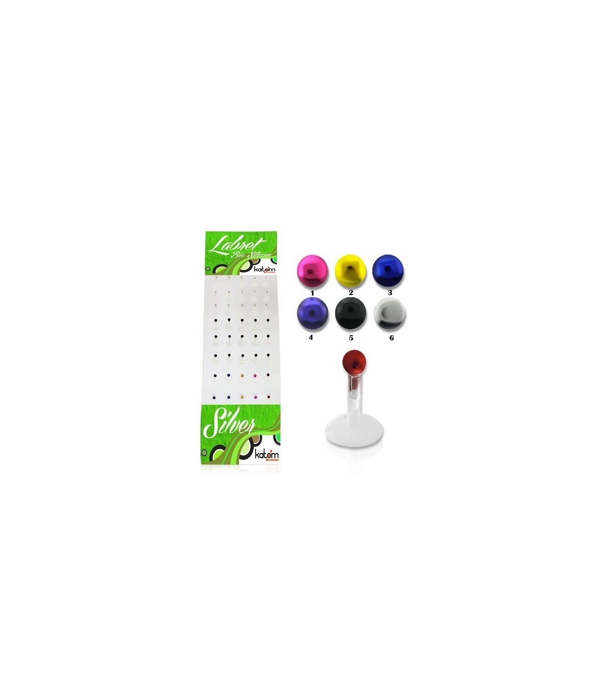 Exhibitor silicone lip piercings colored ball coated with epoxy resin. 9 different colors.