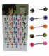 Exhibitor steel tongue piercing. With and without crystal In 3 metallic colors. Smooth ball.40 units per display