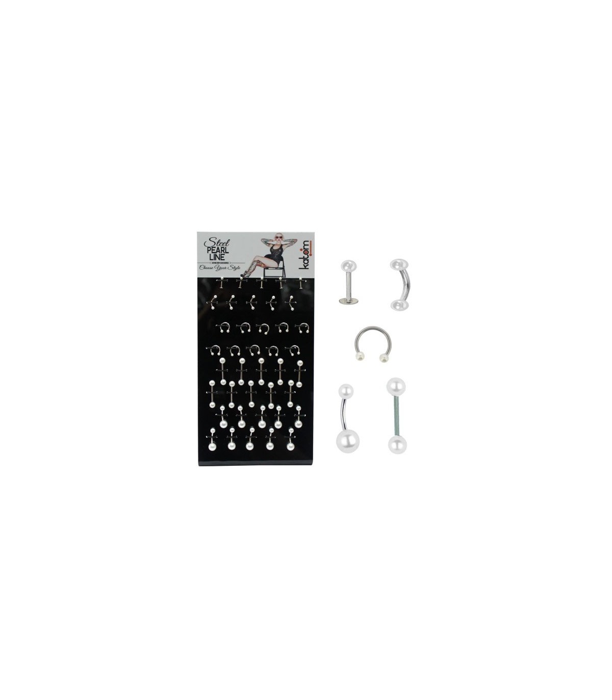 Body piercing display with balls- 3 sizes: 6mm, 8mm and 10mm- 3 colors: steel, golden, black(Number of pieces: 36)