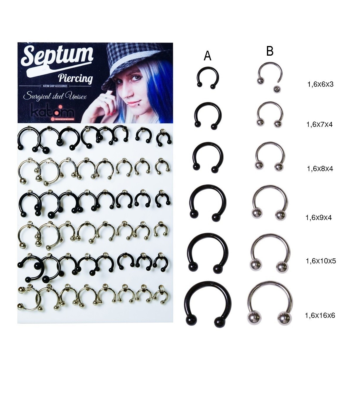 Steel body Piercing /Septum Display which bar is 1.2 mm width allowing to be used as Septum, Helix, Tragus and earrings with a clickable hinged segment closure