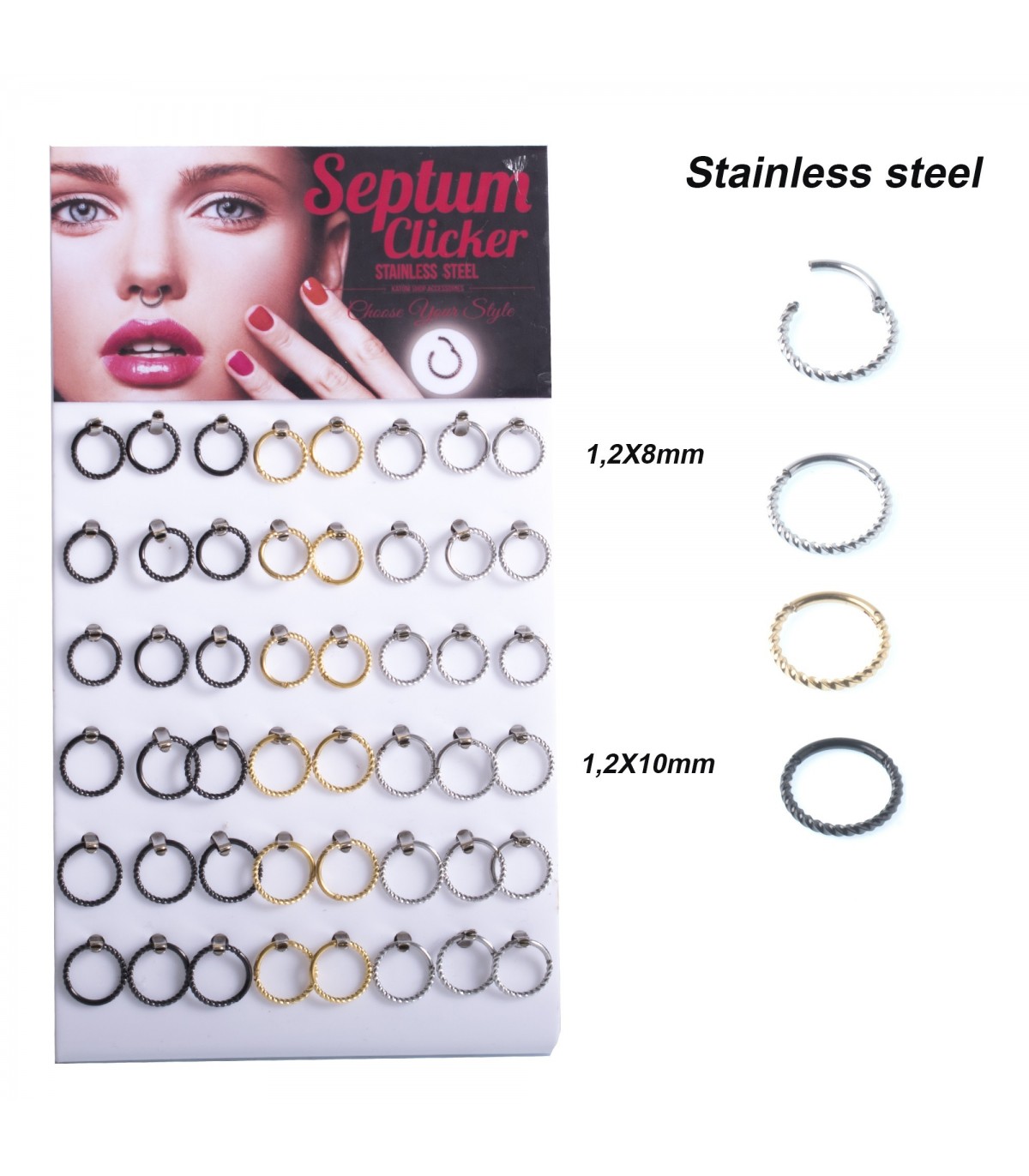 Display with steel septum clicker.hinged segment ring with 8,10mm diameter