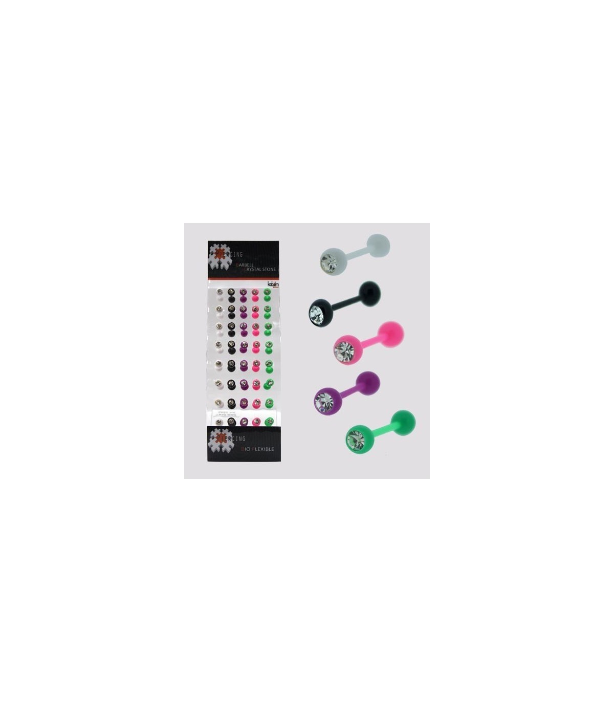 Exhibitor silicone tongue piercing. Reversible on one side and smooth on the other. 5 colors with white stone. Unisex.