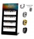 Expositor de aros de acero negros grabados al láser, varios modelos.