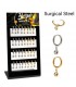 Expositor de aros de acero clicker 4mm- Tres tamaños: 10, 12 y 14 mm de diámetro- Tres colores: acero, dorado y negro(Número de piezas: 32)