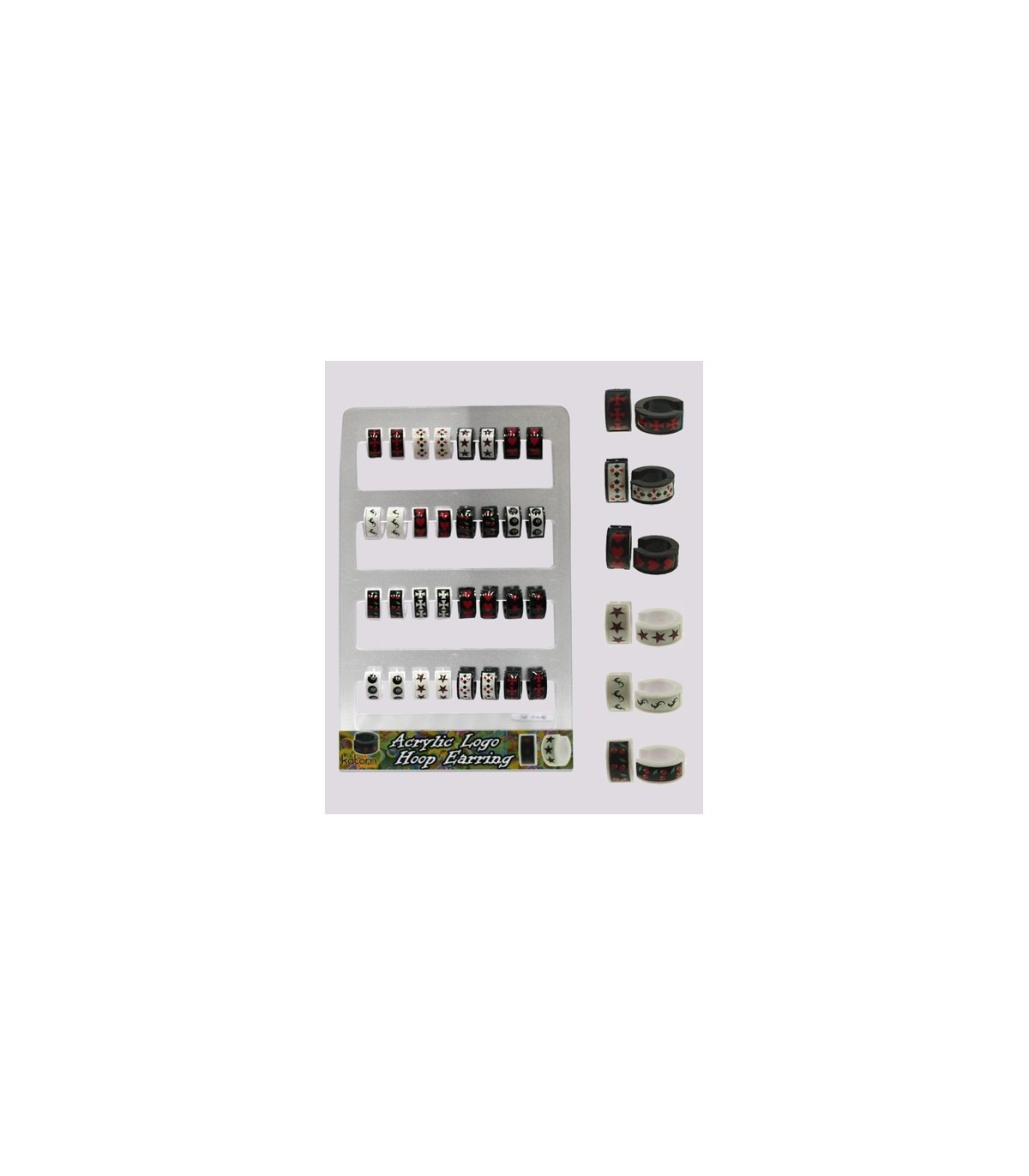 Expositor de 32 piezas de aros acrílicos con símbolos tribales.