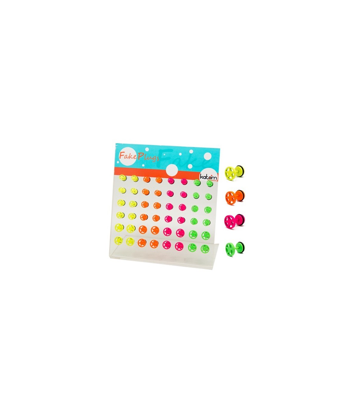 Expositor falsas dilataciones 6, 8,10mm colores neón. Reversibles. Diseño de estrella.