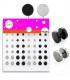 Expositor Falsas Dilataciones de acero quirurgico con diferentes hologramas geometricos en gris. 6 diseños. Tamaños: 6mm, 8mm, 10mm.