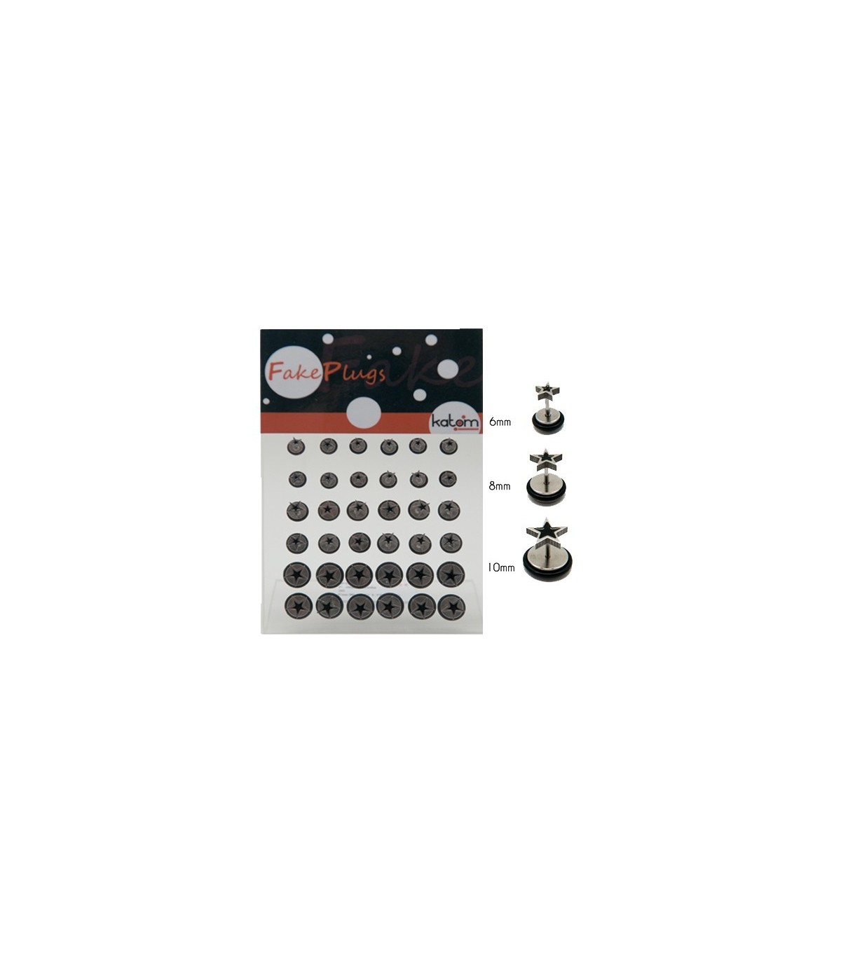 Expositor Falsas dilatación de 36 unidades tallas 8, 10mm. Con cristales tipo swarovski 2 colores acero y negro.
