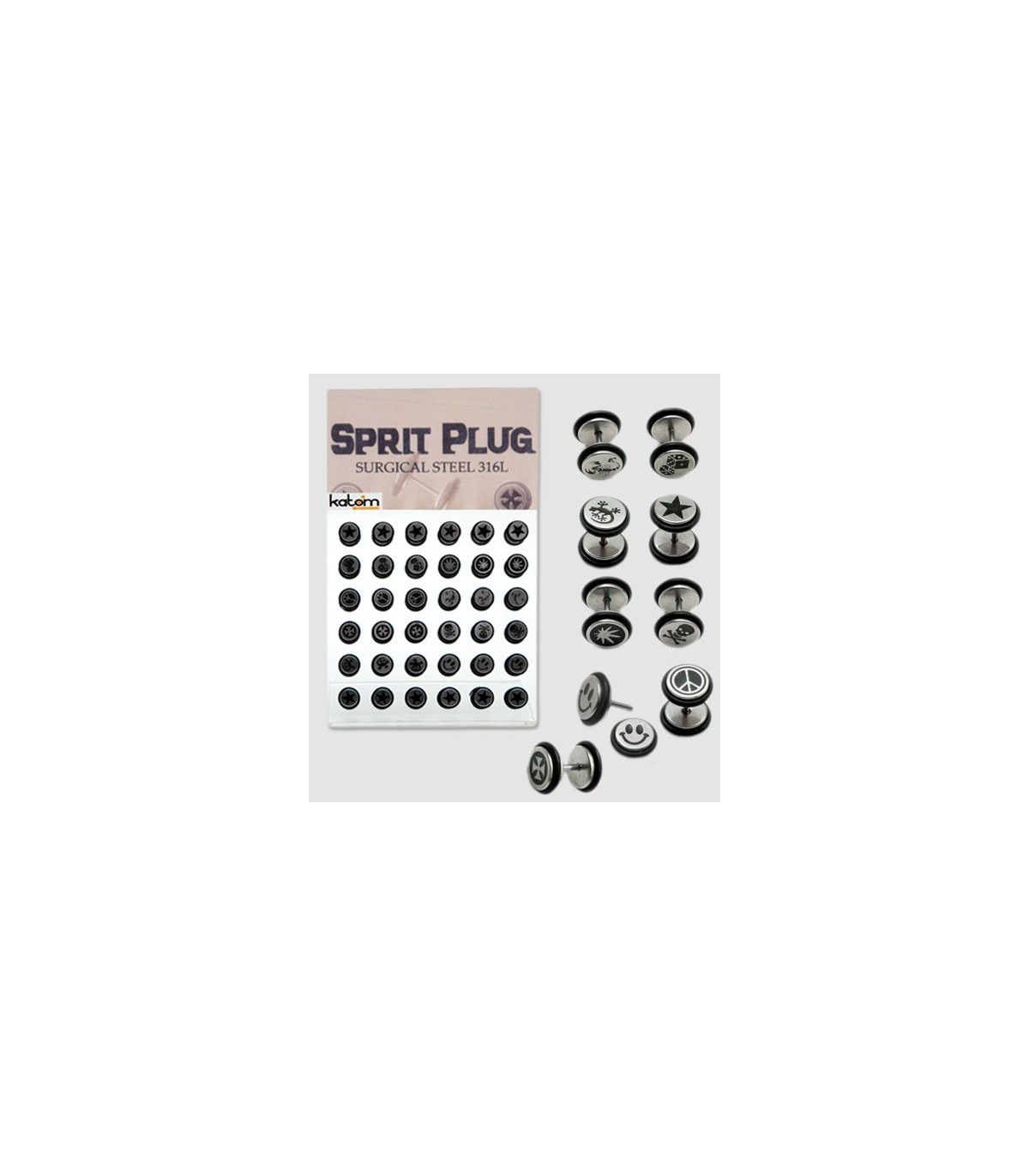 Expositor de falsas dilataciones. Con simbolos. Diseños de la moda actual. 8mm, unisex.