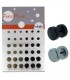Espositor de falsas dilataciones de acero con polvo orgánico en 6 colores y 3 tamaños (6, 8 y 10 mm)
