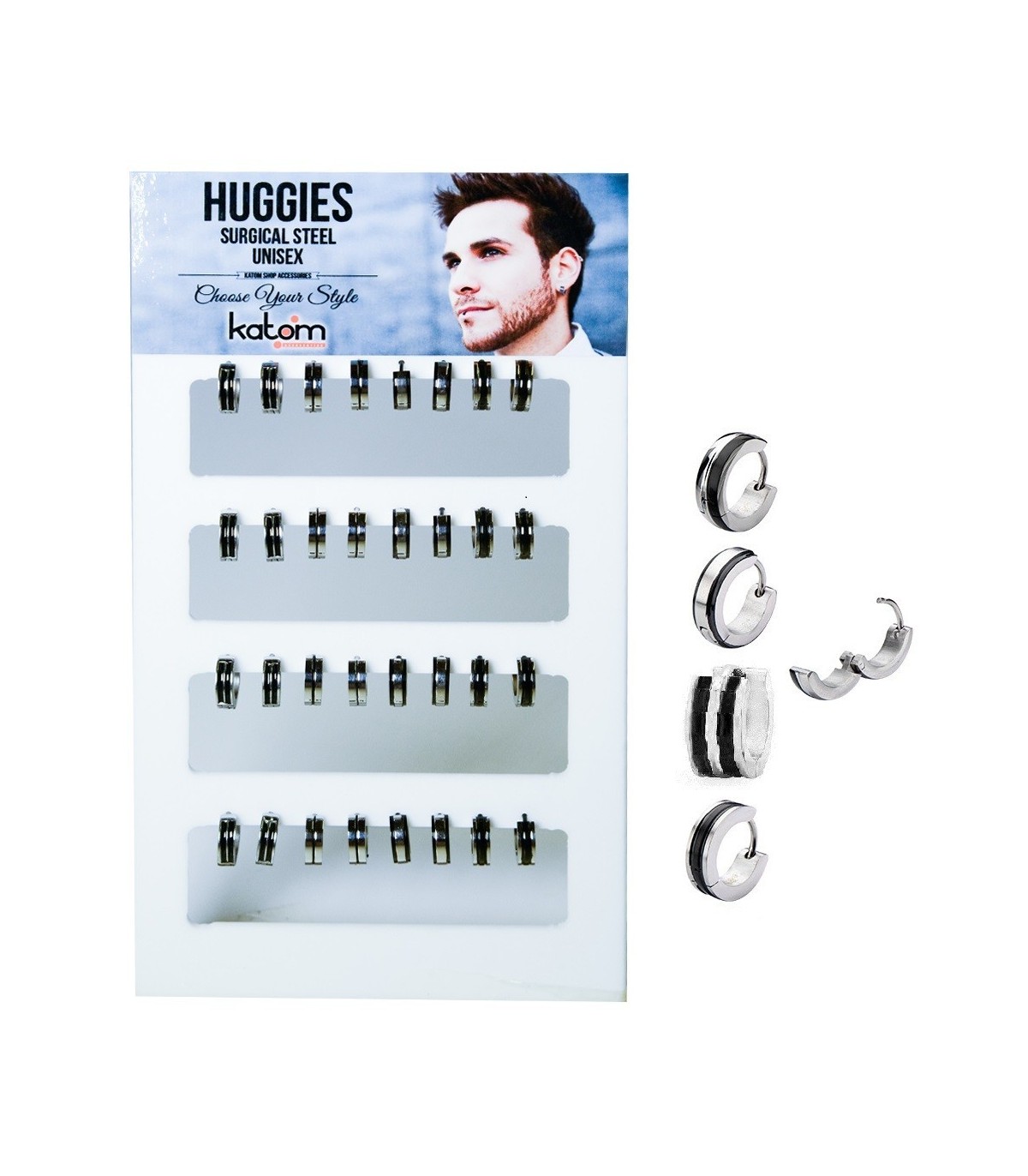Expositor de aros de acero en colores negro y acero grabados, 4 modelos. ¡Perfecto para chicos!