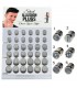 Expositor Falsas dilatación de 36 unidades tallas 8, 10mm. Con cristales tipo swarovski 2 colores acero y negro.