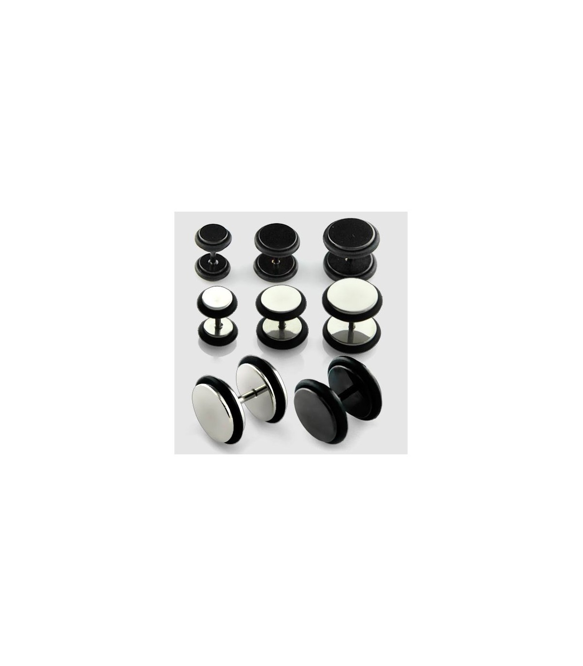 Expositor de falsas dilatación de acero. Color plateado y negro. Para hombre y mujer 6mm, 8mm ,10mm.