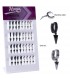 Expositor de aros de acero para nariz, labio y ceja en 4 colores y 4 tamaños (6, 7, 8 y 9 mm) con bola de 2 mm.