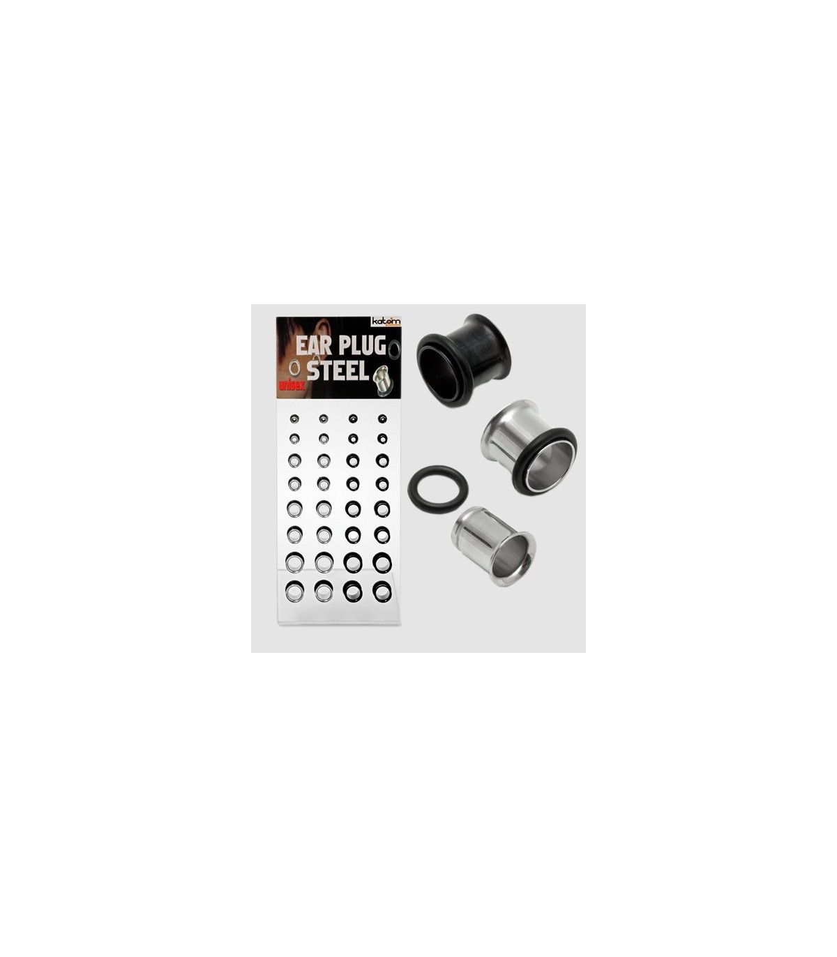 Expositor 40 piezas de dilataciones de acero con goma detrás. Medidas 3mm, 4mm, 5mm, 6mm, 8mm, y 10mm. Acero con goma detrás unisex. Viene en parejas de color acero negro y acero plateado. Para hombre y mujer. Esta súper de moda.