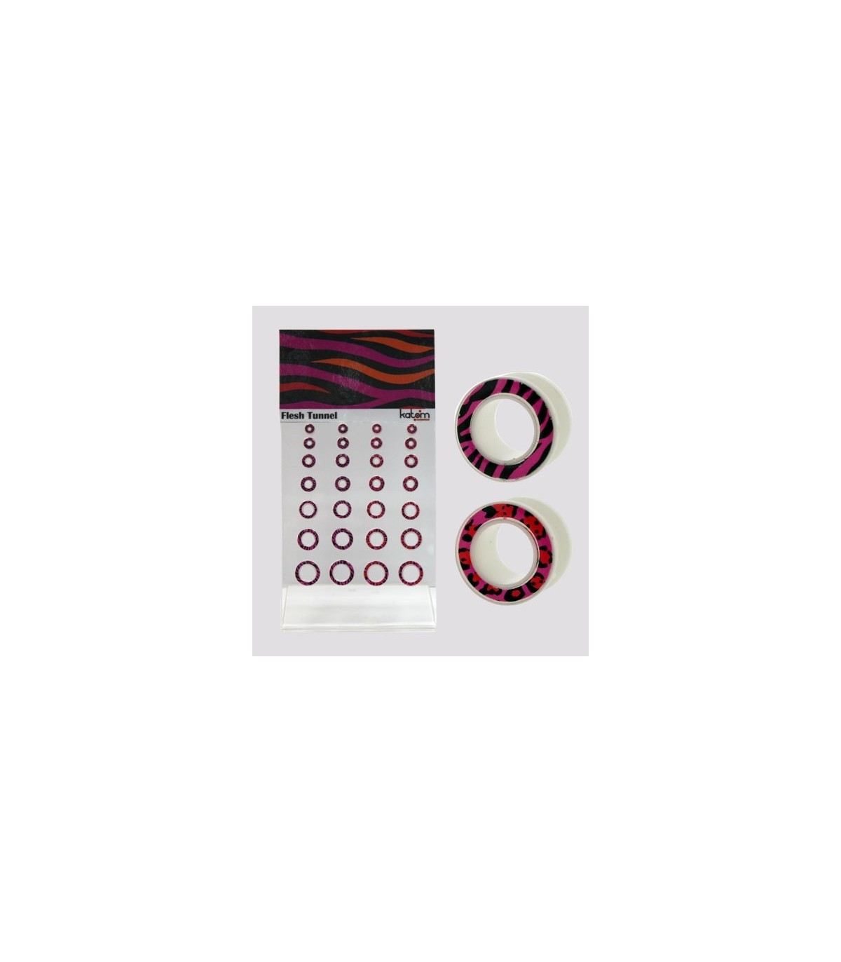 Expositor de dilataciones con motivos rasta. Con diferentes tamaños: 6,8,10,12 mm. Diferentes dibujos.