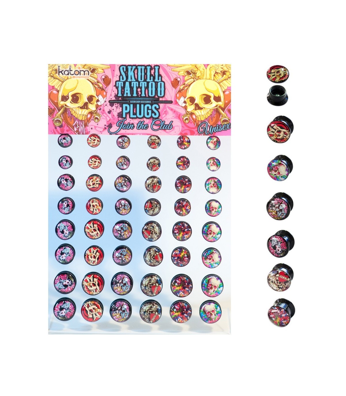 Expositor dilataciones a Rosca. Tapadas. Con diseño de camuflaje. En material Acrilico. En 6 colores diferentes. Tamaños. 6mm, 8mm, 10mm, 12mm.