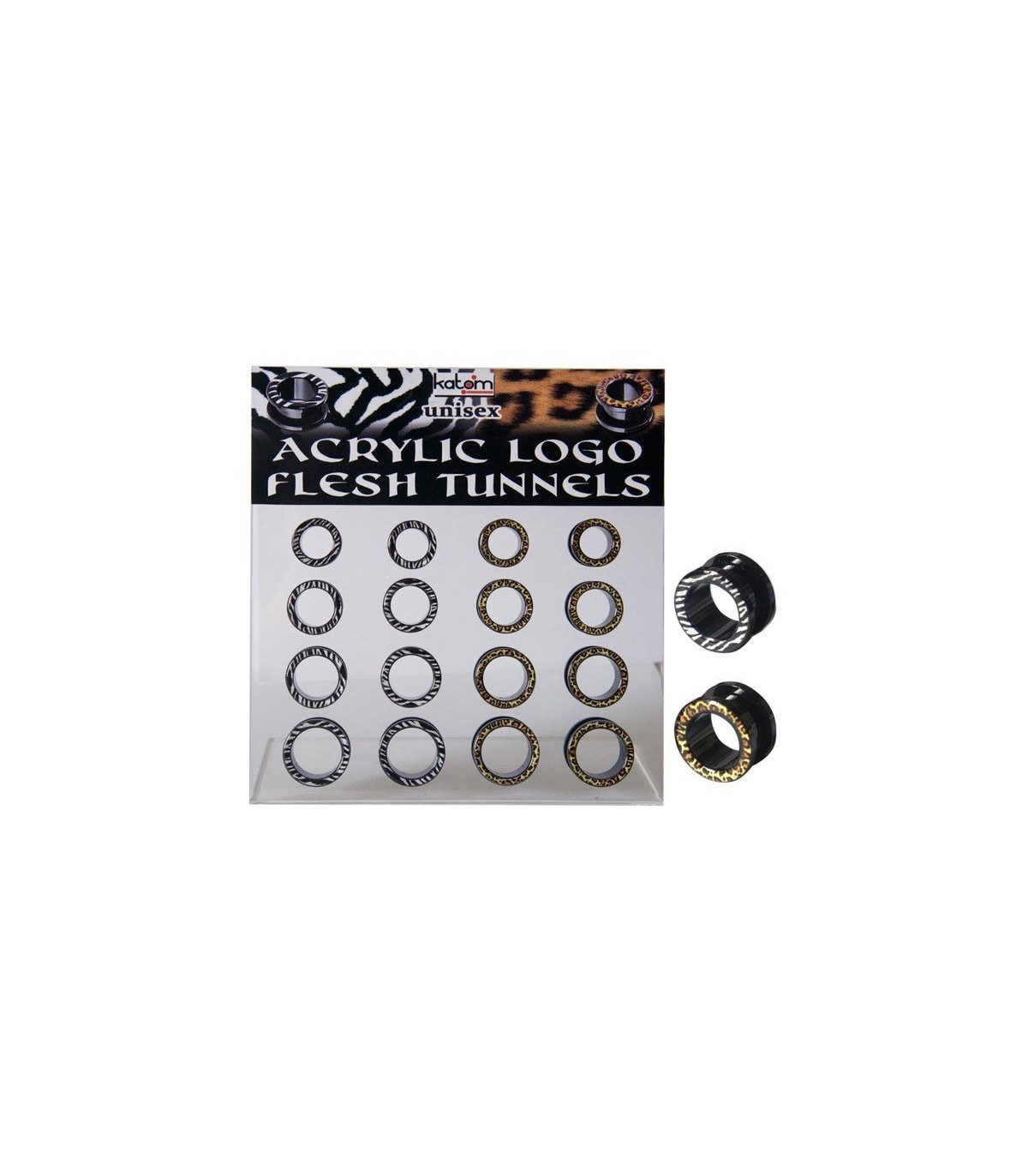 Expositor a rosca estampado leopardo y Cebra acrilico de tamaños 6,8,10,12mm