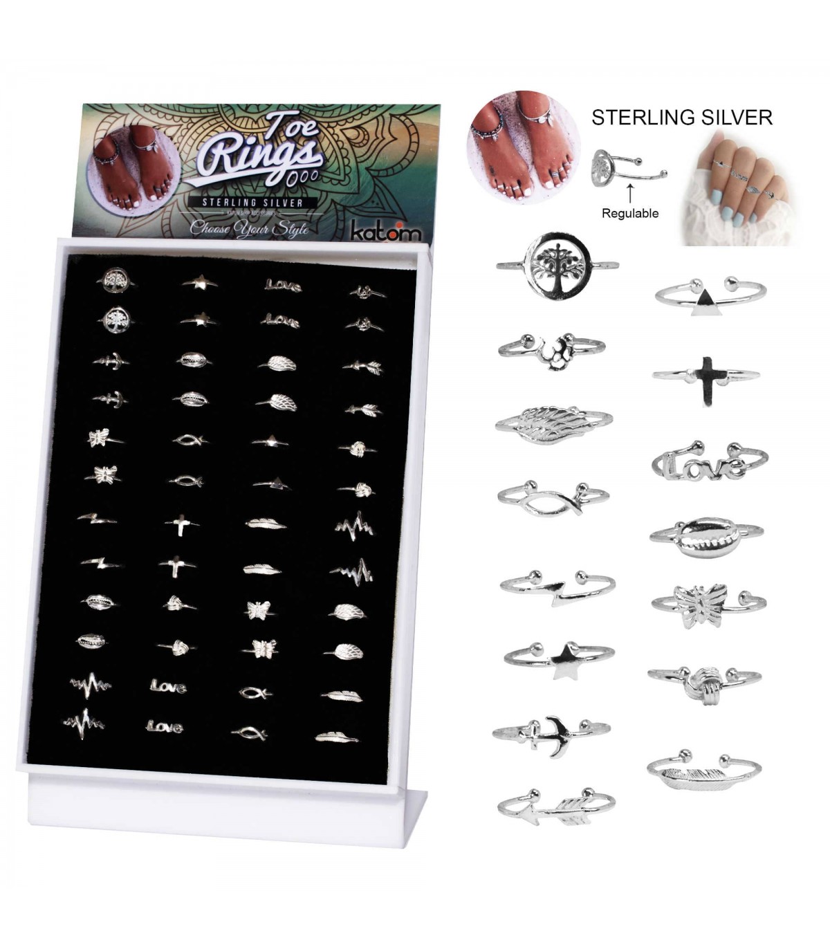 Expositor de anillos de plata regulables que pueden usarse para el pie o para la mano como midi ring. Hay 15 modelos diferentes.