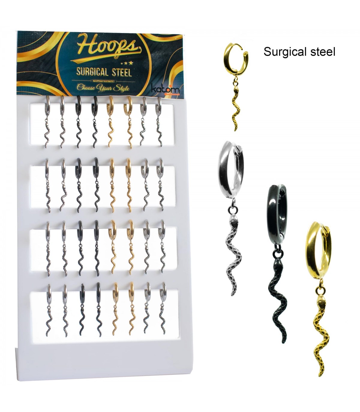 Expositor de aros de acero con cierre clicker y colgante de diferentes motivos