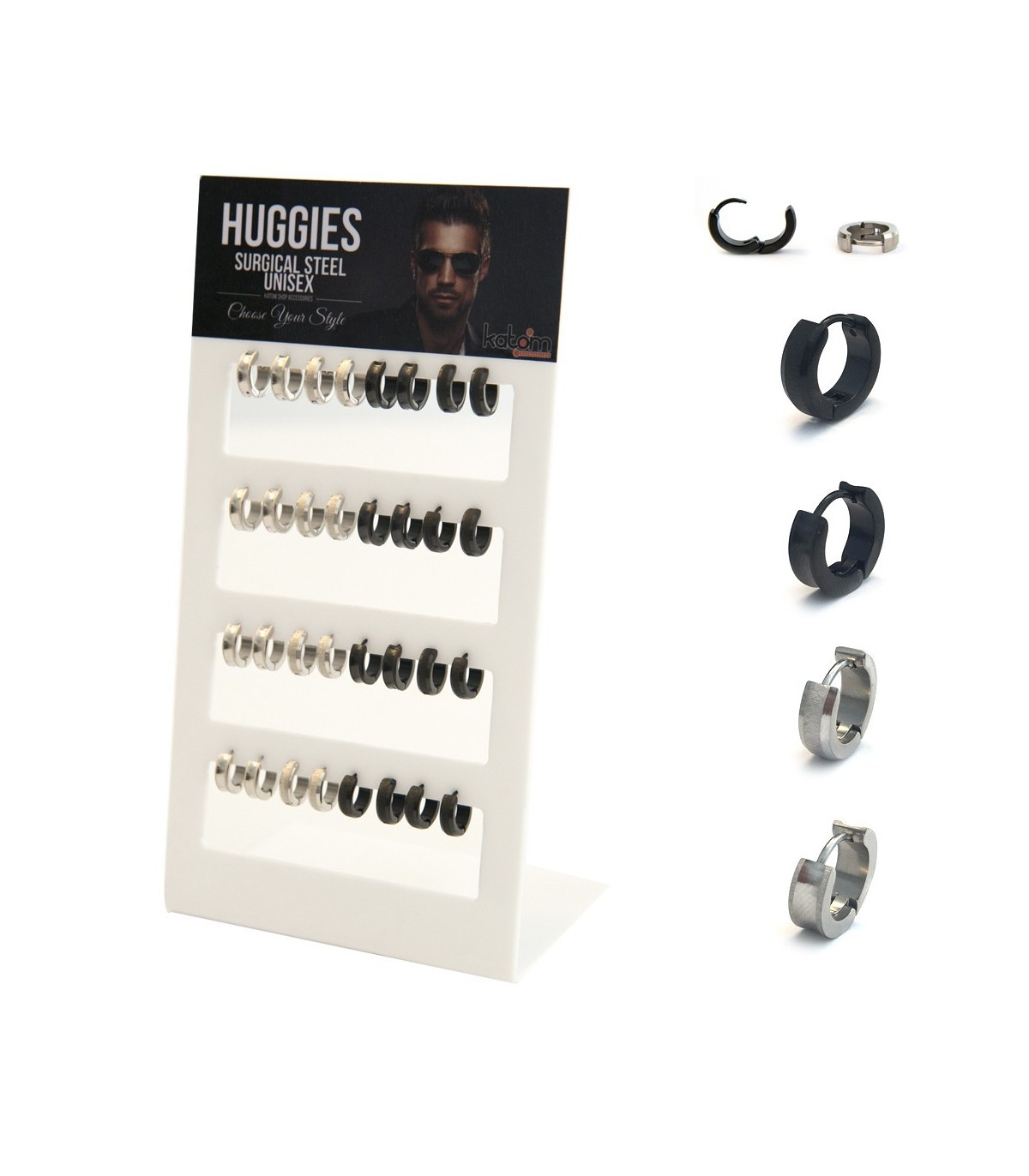 Expositor de 36 parejas de aros 10mm, 12mm y 14mm grosor de 1,20mm para hombre y mujer.