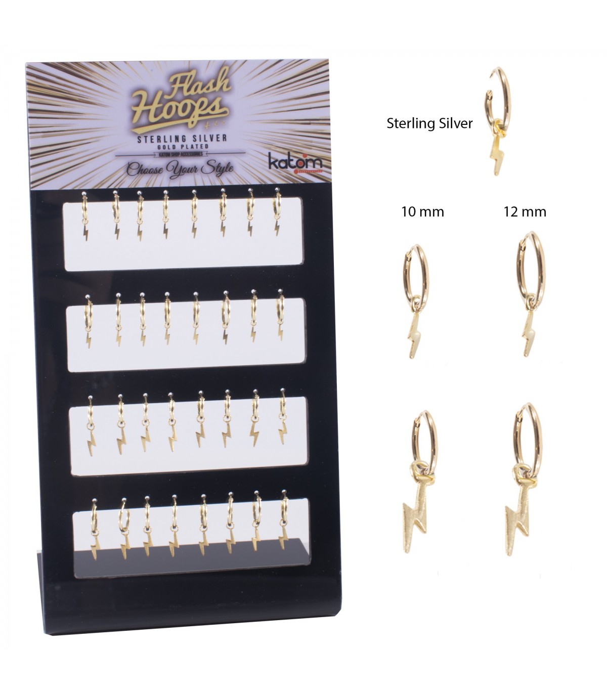 Expositor de aros de plata chapados en oro con colgante de rayo