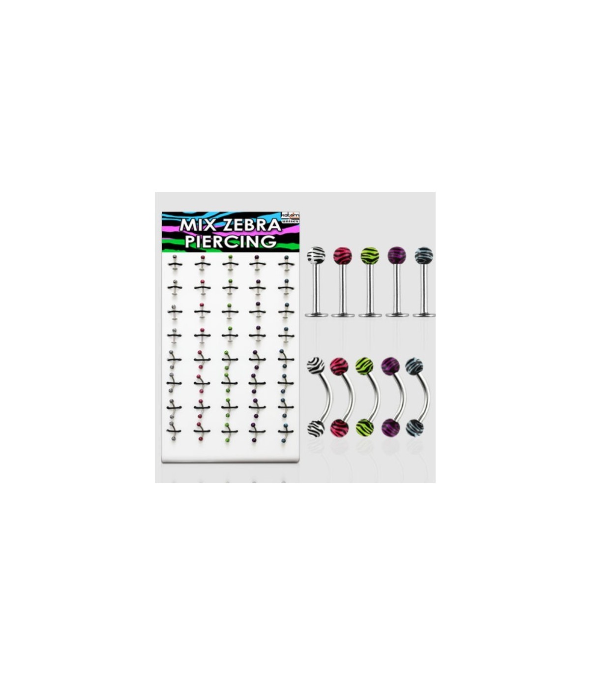 Expositor de piercing labio y ceja diferentes colores estampado cebra.