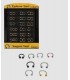 Expositor de aros de acero para nariz, labio y ceja en 4 colores y 4 tamaños (6, 7, 8 y 9 mm) con bola de 2 mm.