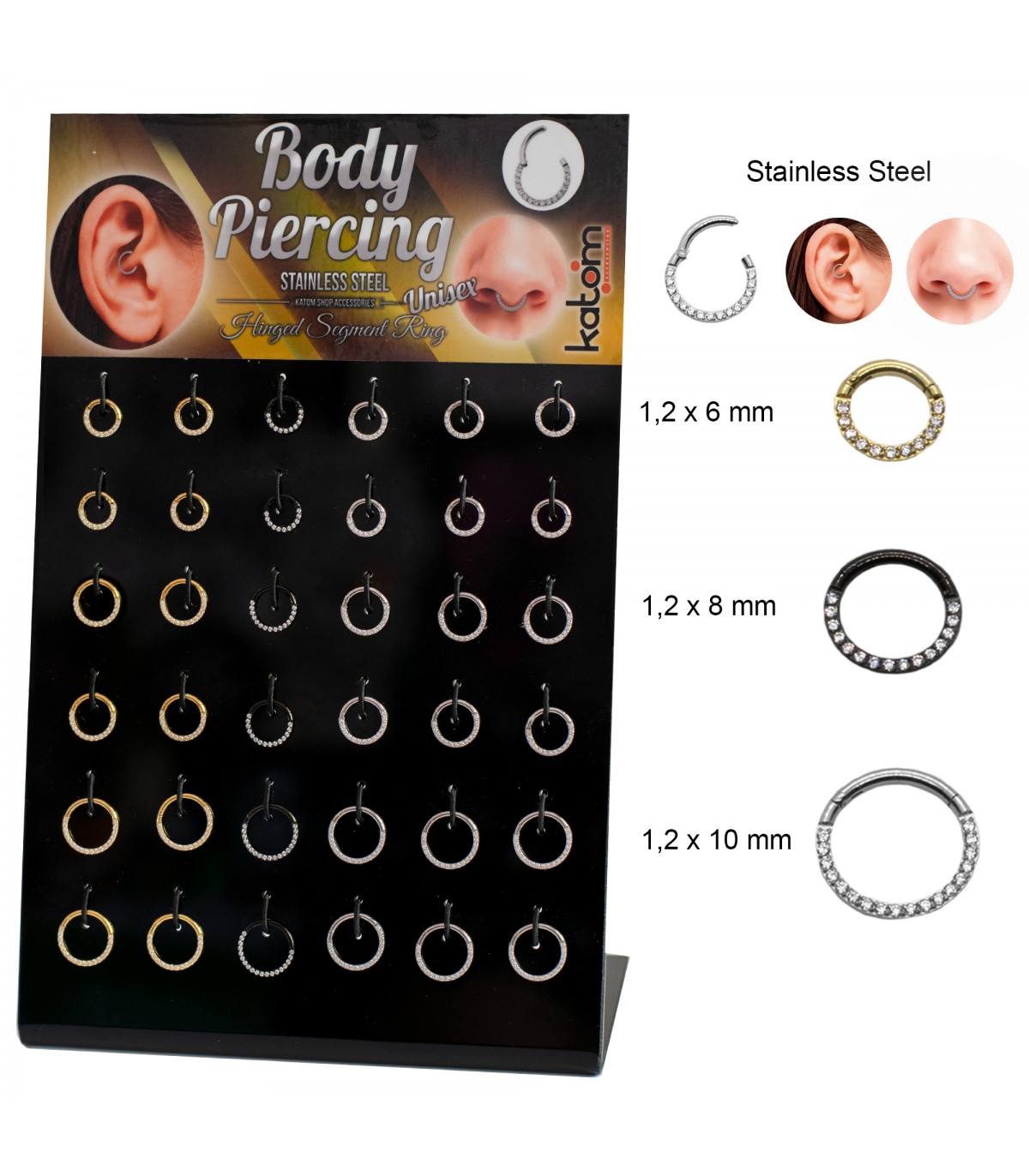 Expositor de piercing para el Daith y el Septum con circonitas y cierre clicker