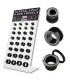Expositor de dilataciones acrílicas. Color blanco y negro. Cierre a rosca. Medidas 2, 3, 4, 5, 6, 8, 10, 12mm.