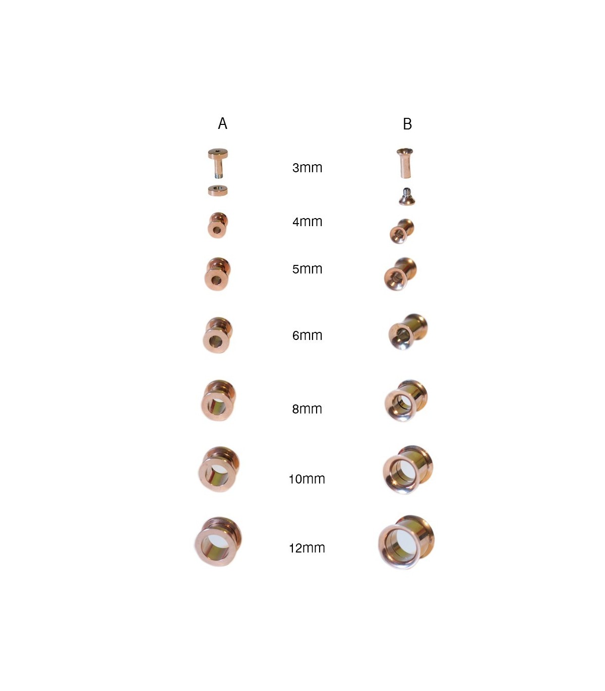 Expositor de dilataciones 3, 4, 5, 6, 8, 10, 12mm en acero y acero negro, rosca interna.