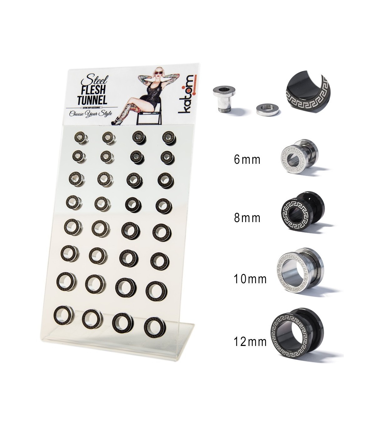 Expositor de dilataciones 3, 4, 5, 6, 8, 10, 12mm en acero y acero negro, rosca interna.