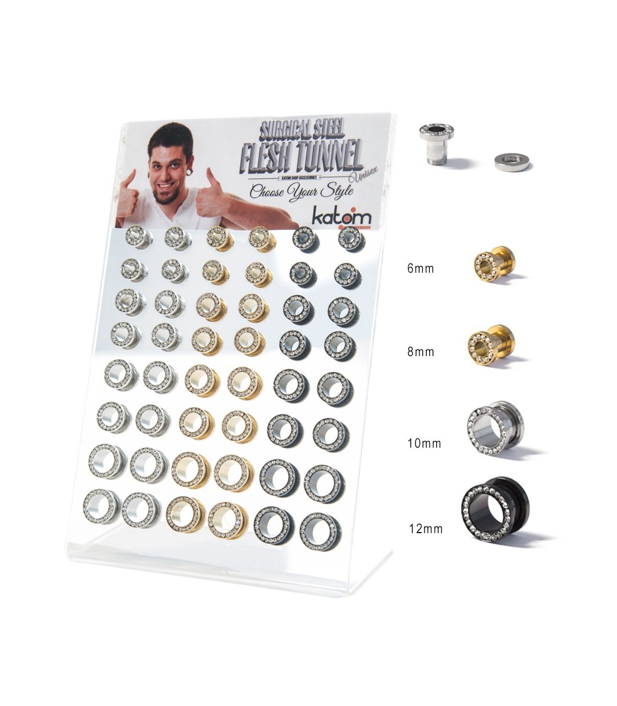 Expositor de dilataciones 3, 4, 5, 6, 8, 10, 12mm en 5 colores distintos de piedra Swarovski.