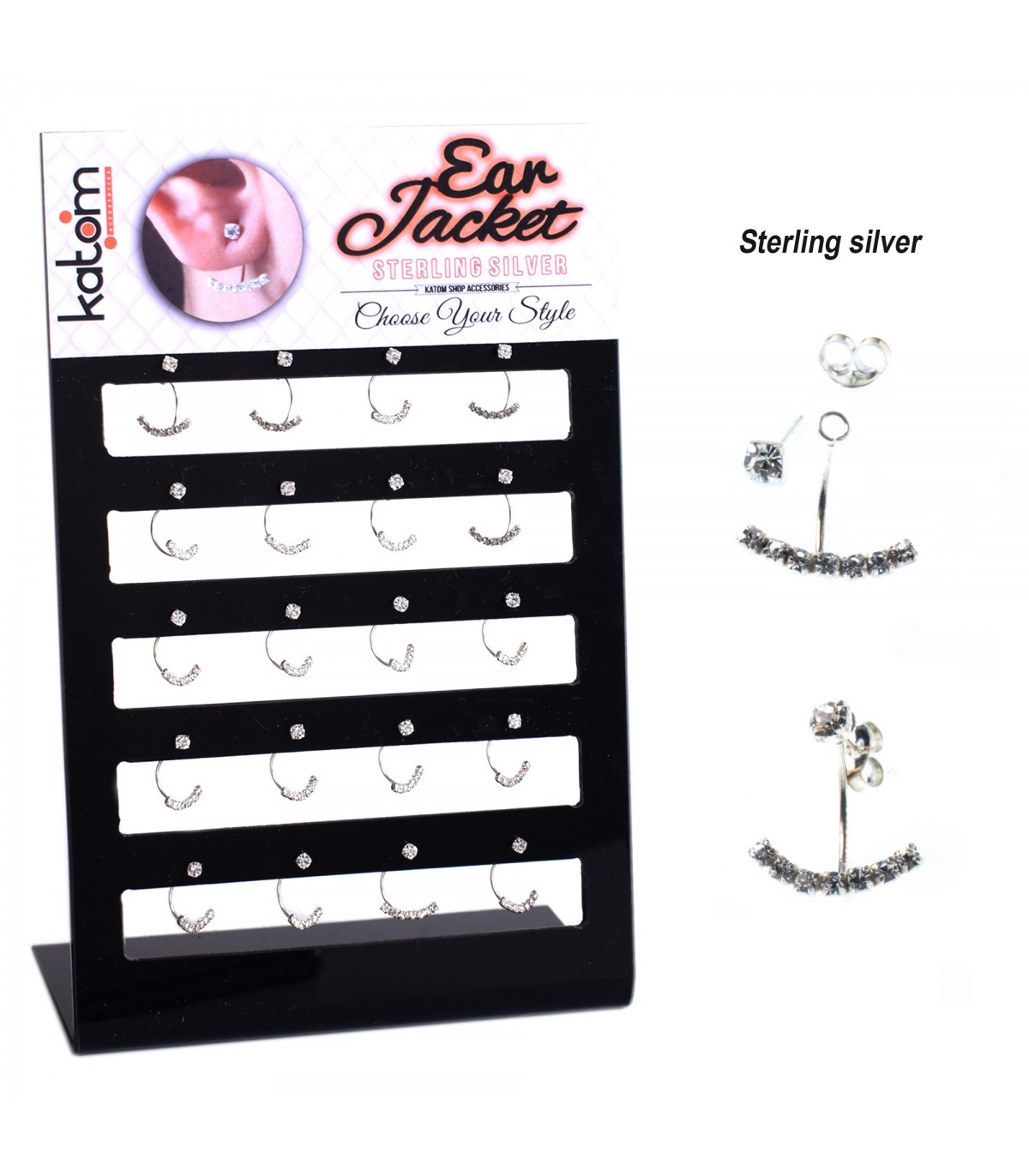 Expositor de pendientes de plata Ear Jacket con parte colgante en forma de arco con 7 pequeñas circonitas.
