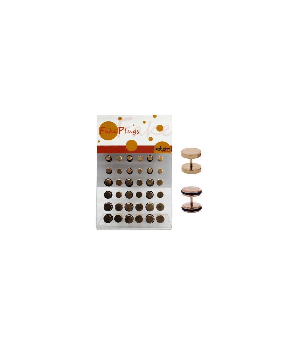 Expositor de 48 piezas de falsas dilataciones de acero liso con banda de goma. Medidas 4, 6,8mm. Para hombre y mujer. Modelo muy popular.