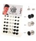 Expositor de falsas dilataciones de acero en color negro y acero, de 10 mm de diámetro, grabadas al láser, 6 modelos diferentes.