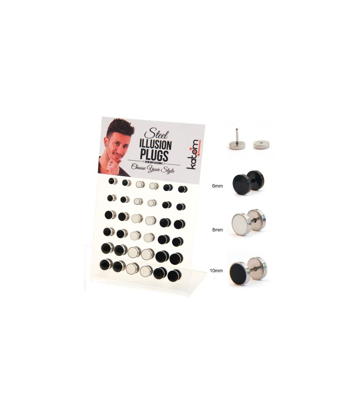 Expositor de falsas dilatación de acero. Color plateado y negro. Para hombre y mujer 6mm, 8mm ,10mm.