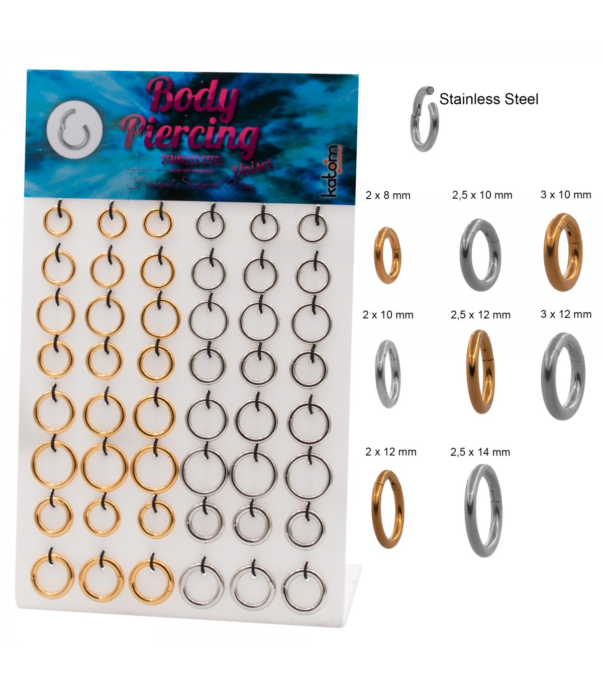 Expositor de aros de acero anchos con cierre click (bisagra) para Helix, Septum, Conch, Daith