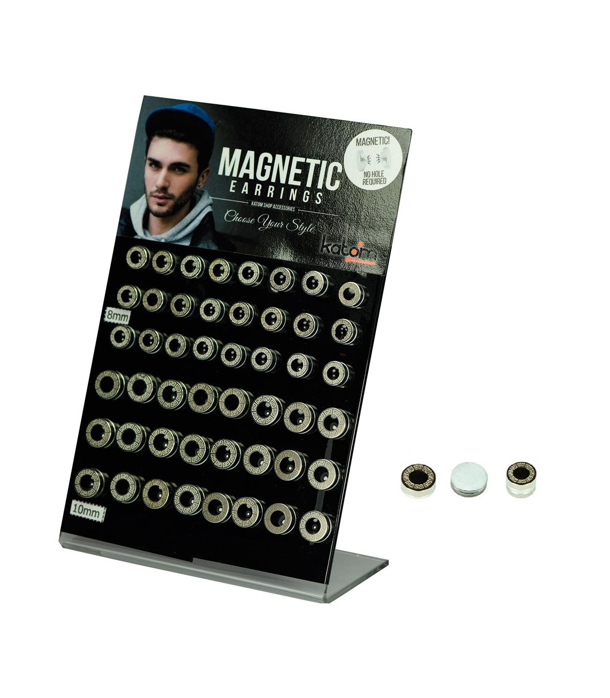 Expositor de falsas dilataciones magnéticas de madera en tres tonos y dos tamaños (8 mm y 10 mm)