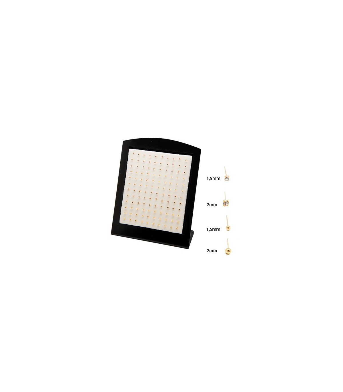 Expositor de aros de acero para nariz, labio y ceja en 4 colores y 4 tamaños (6, 7, 8 y 9 mm) con bola de 2 mm.