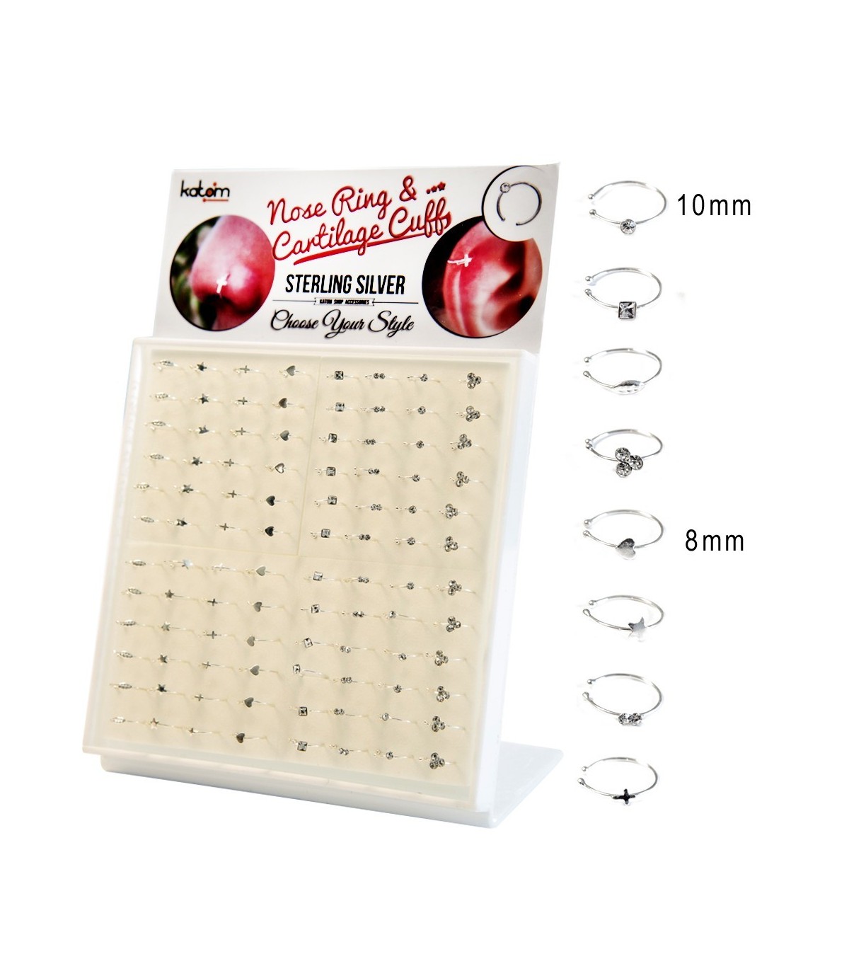 Expositor de Aros de nariz de plata de ley 925. Con bola o con traba. En 2 tamaños diferentes: 8mm 10mm