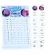 Expositor de aros de acero para nariz, labio y ceja en 4 colores y 4 tamaños (6, 7, 8 y 9 mm) con bola de 2 mm.