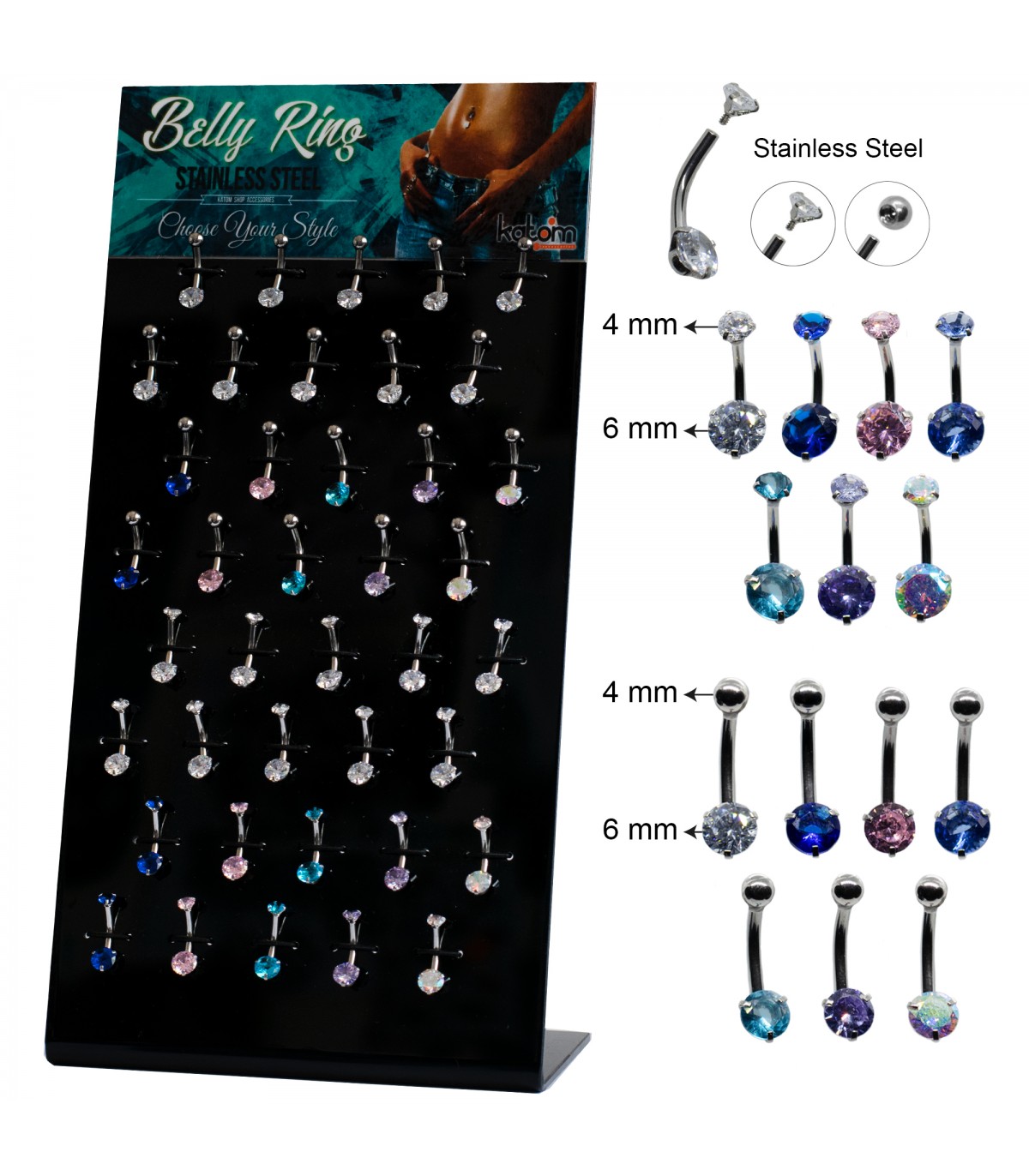 Expositor de piercing de ombligo de 9mm piedra swarovski en varios modelos. Expositor de mesa de regalo.