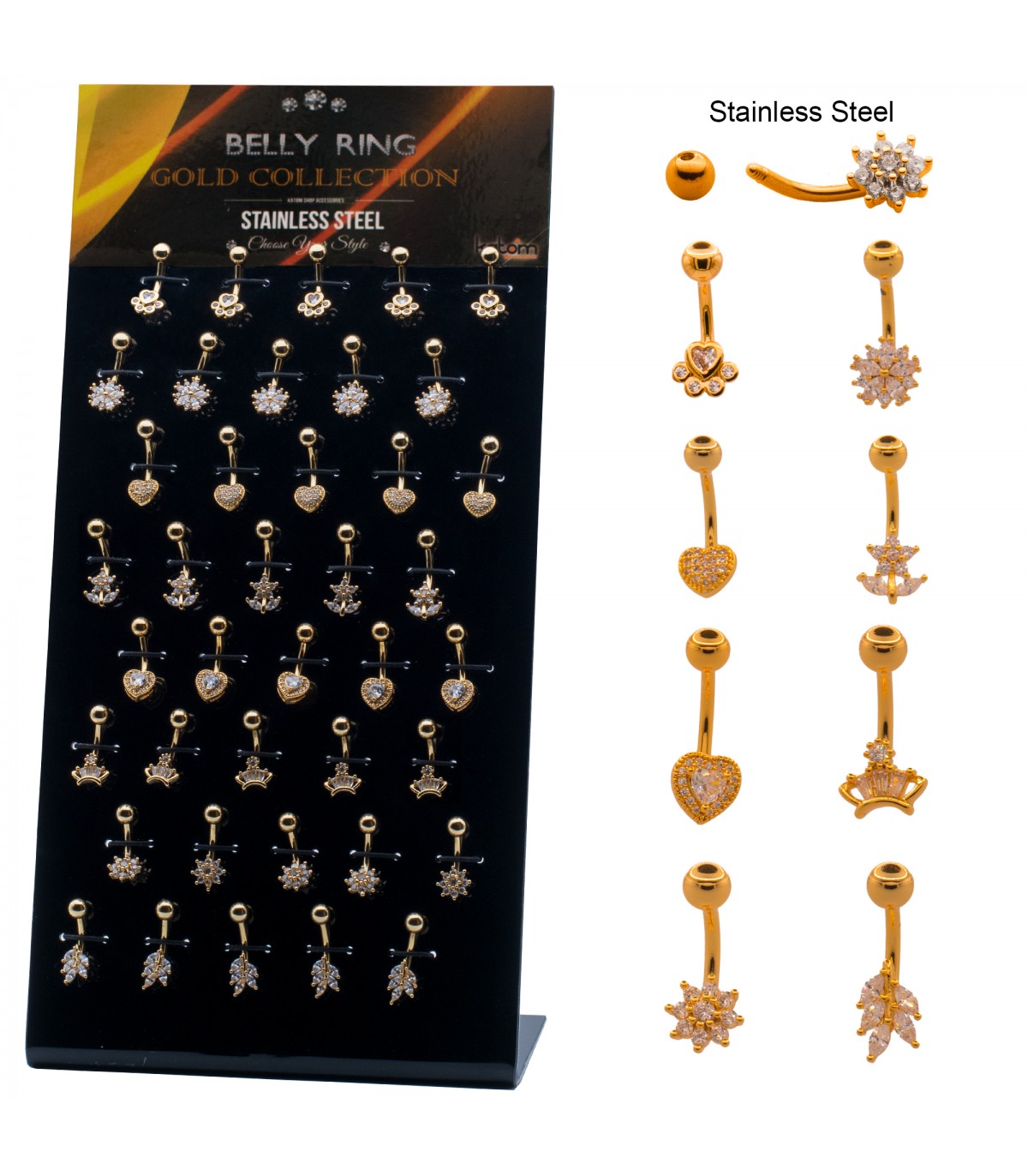 Expositor de piercing de ombligo de 9mm piedra swarovski en varios modelos. Expositor de mesa de regalo.